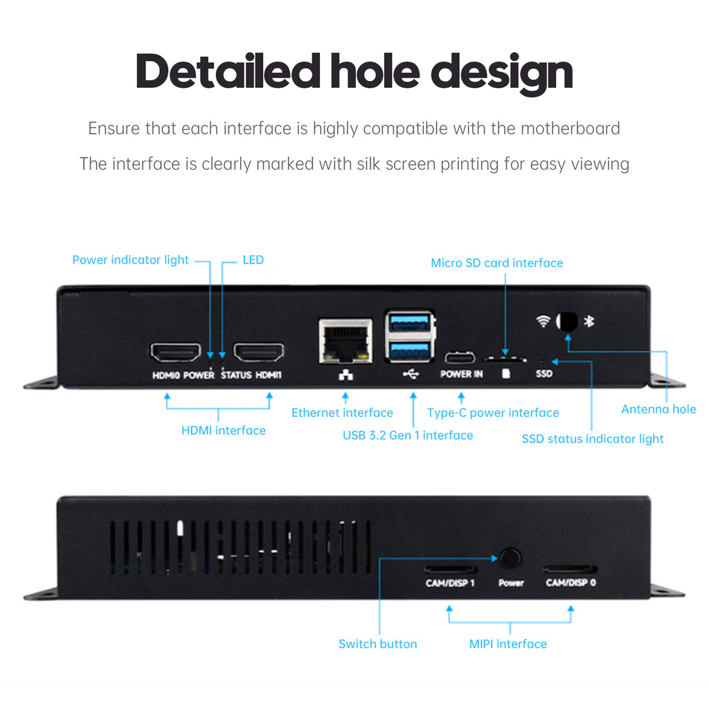 Extern expansion 40PIN GPIO-gränssnitt, med ett standard 40PIN GPIO-adapterkort, expanderas 40PIN GPIO-gränssnittet på CM5-baskortet till utsidan av skalet, vilket är bekvämt för åtkomst till olika expansionskort