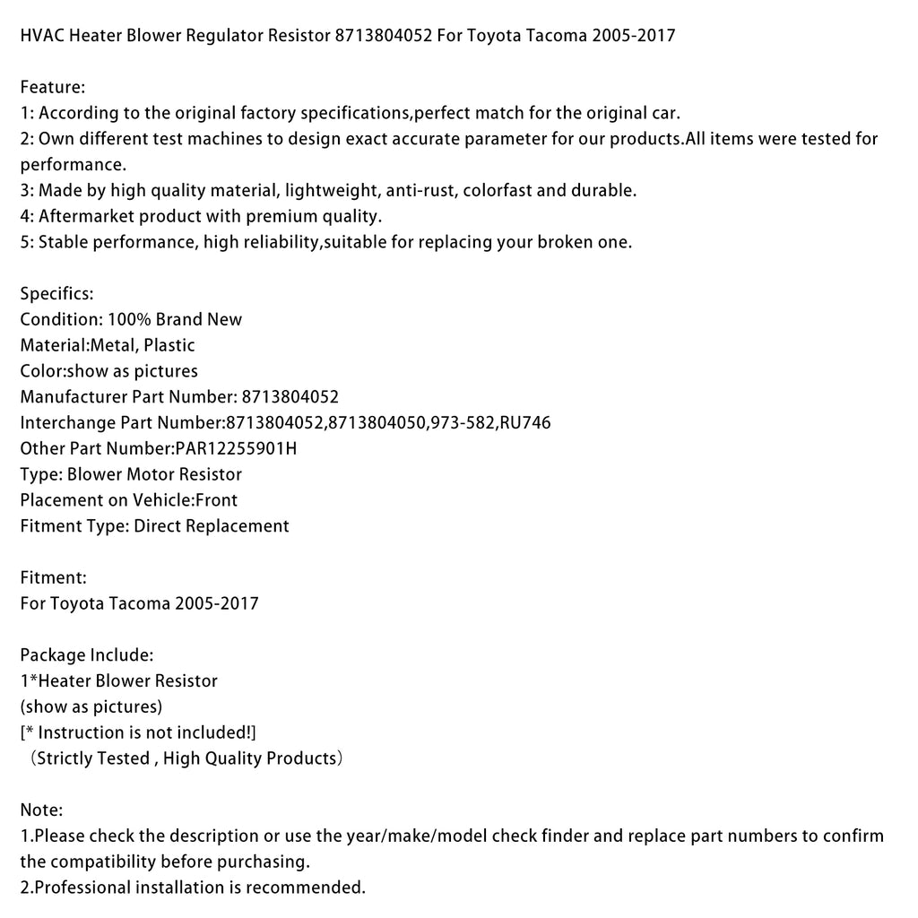 HVAC Heater Blower Regulator Resistor 8713804052 For Toyota Tacoma 2005-2017