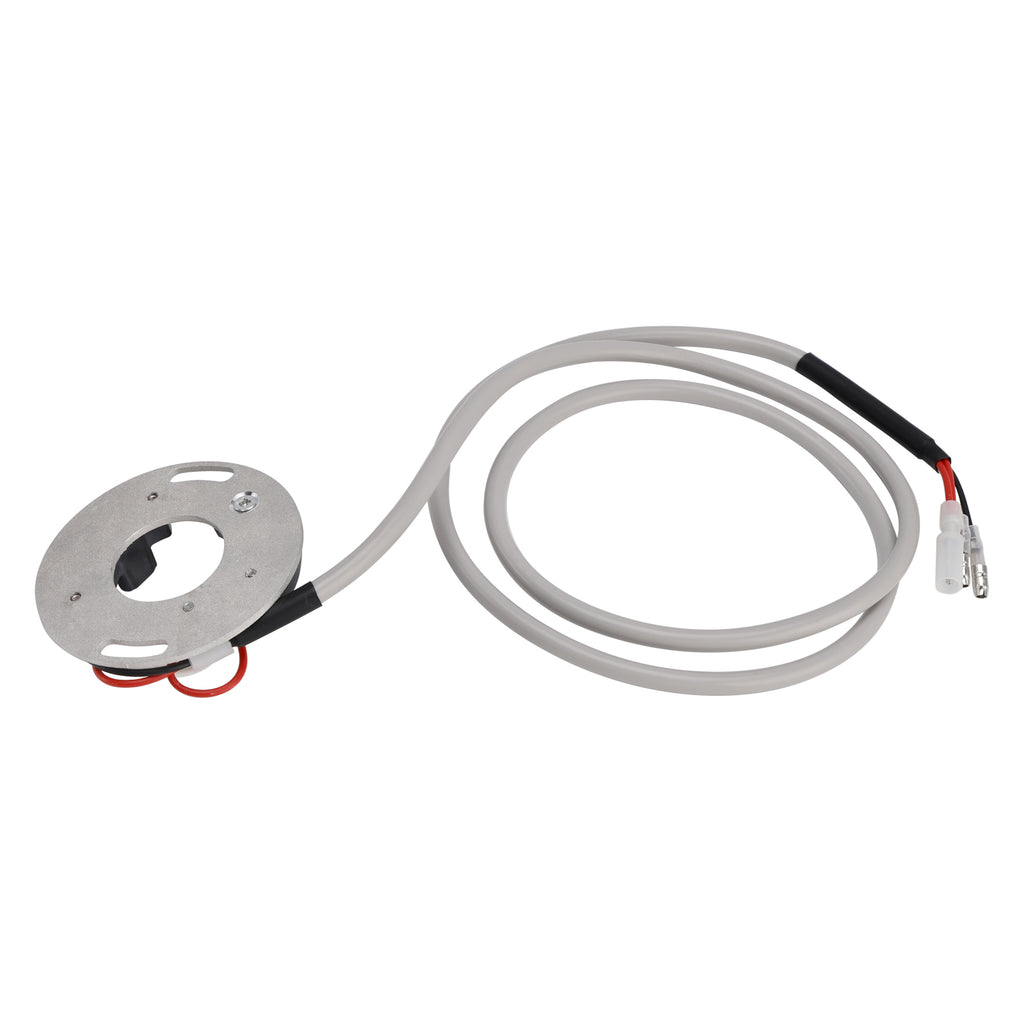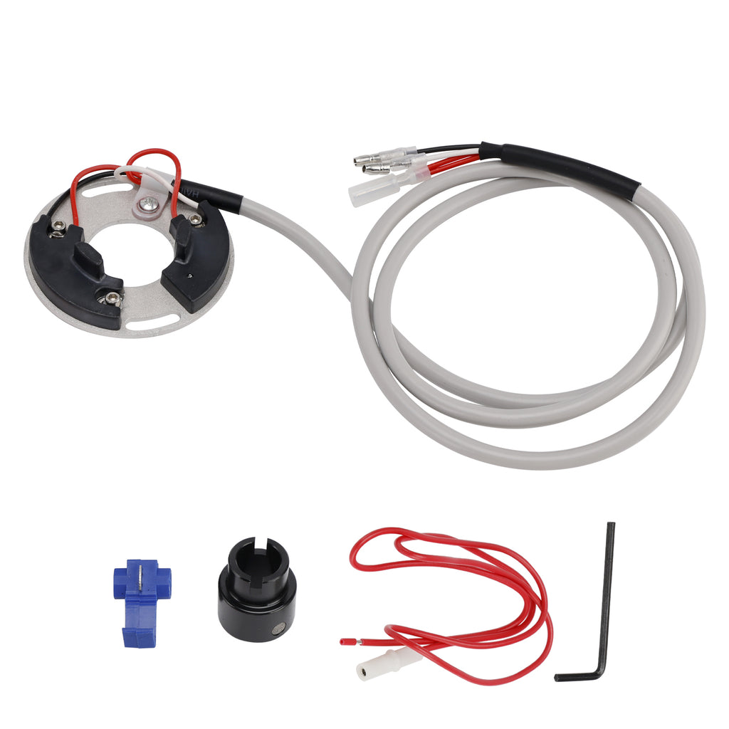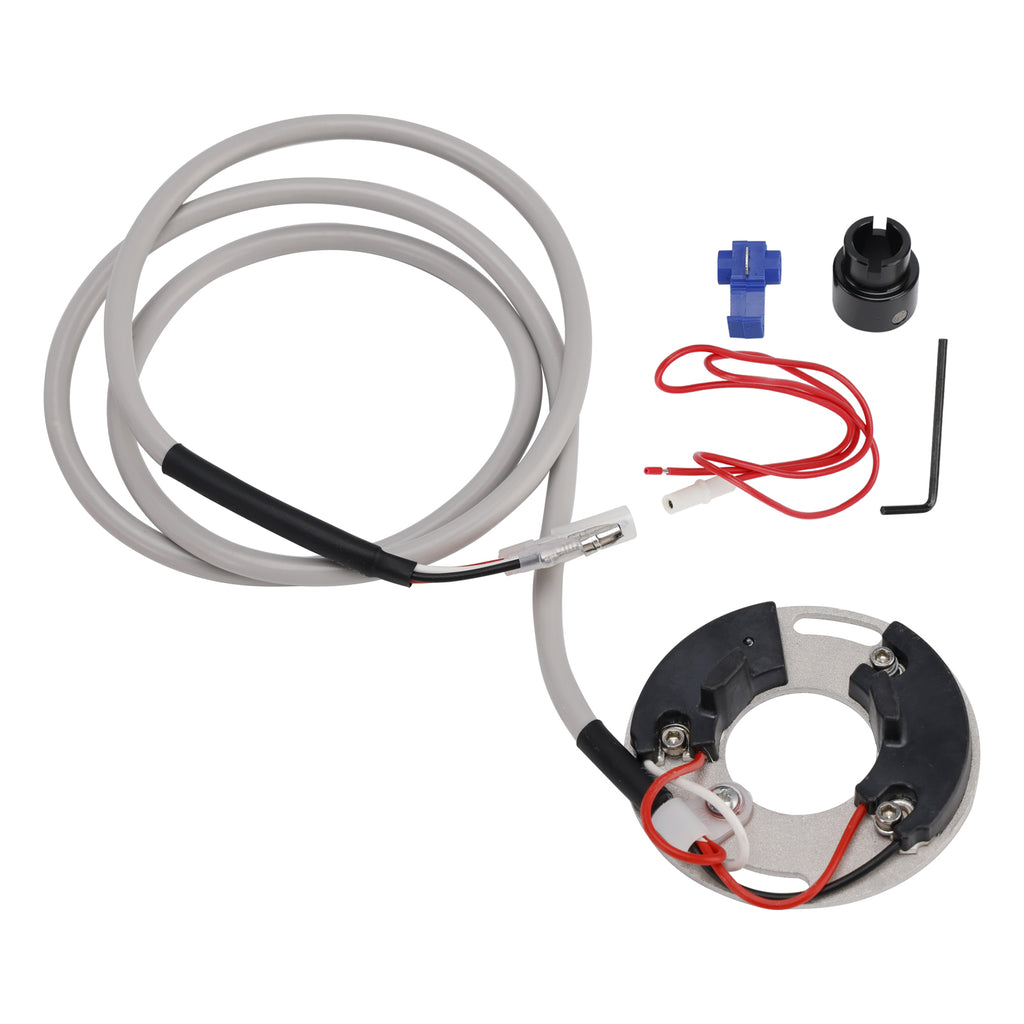 Housed behind the ignition cover and uses a magnetic rotor with the original spark advancer, so the factory advance curve is maintained.