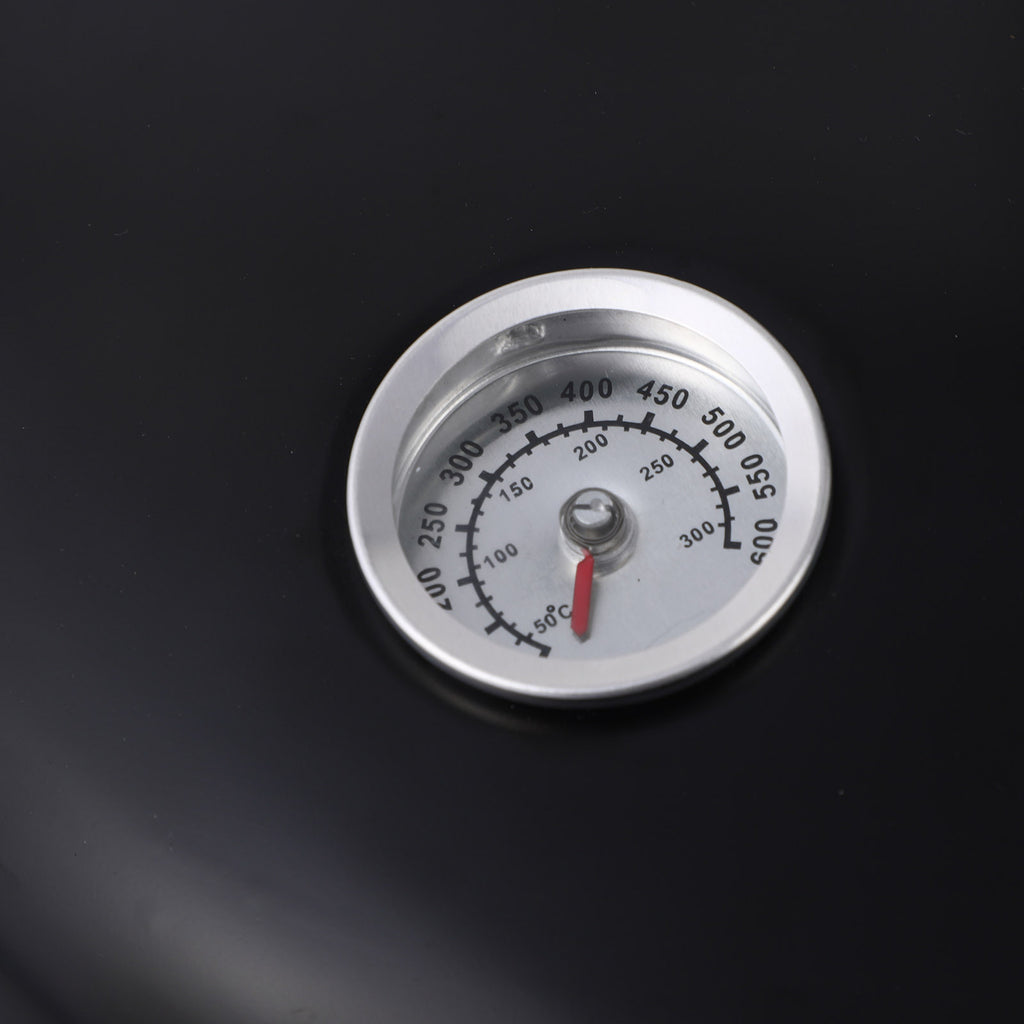 【Termometer &【Justerbart luftutlopp】: För att bättre kunna övervaka och kontrollera temperaturen är denna grill utformad med en inbyggd termometer med detaljerad skala. Kombinerat med det justerbara luftutloppet på toppen kan du kontrollera luftflödet för att bibehålla en jämn temperatur för bästa möjliga matlagningsupplevelse.