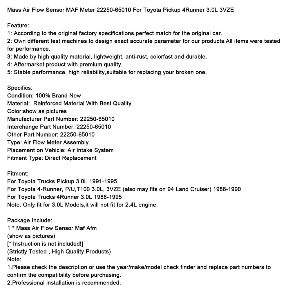 Luftmassemätare MAF-mätare 22250-65010 För Toyota Pickup 4Runner 3.0L 3VZE