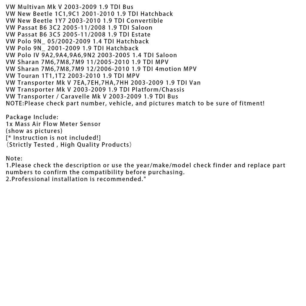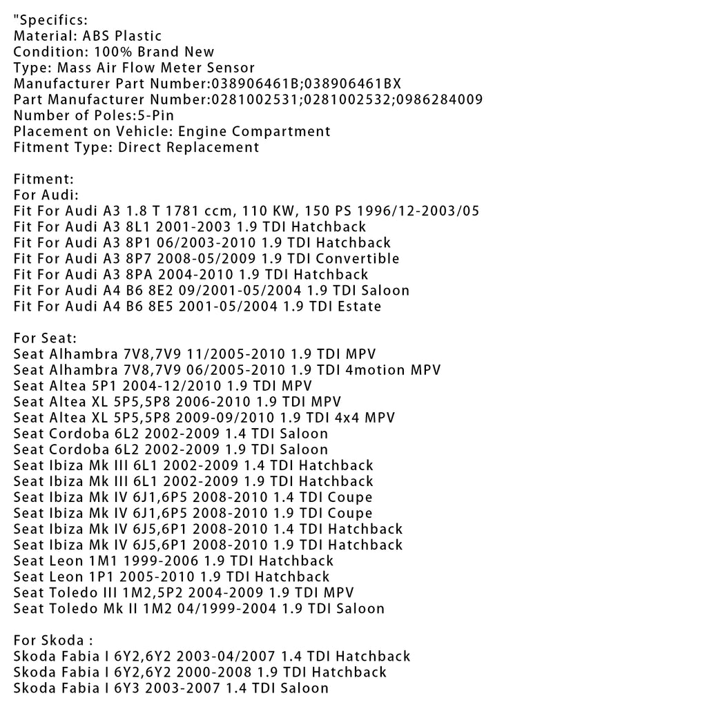 Luftmassemätare för Audi A3 VW Golf Octavia 1.9 TDI 0281002531
