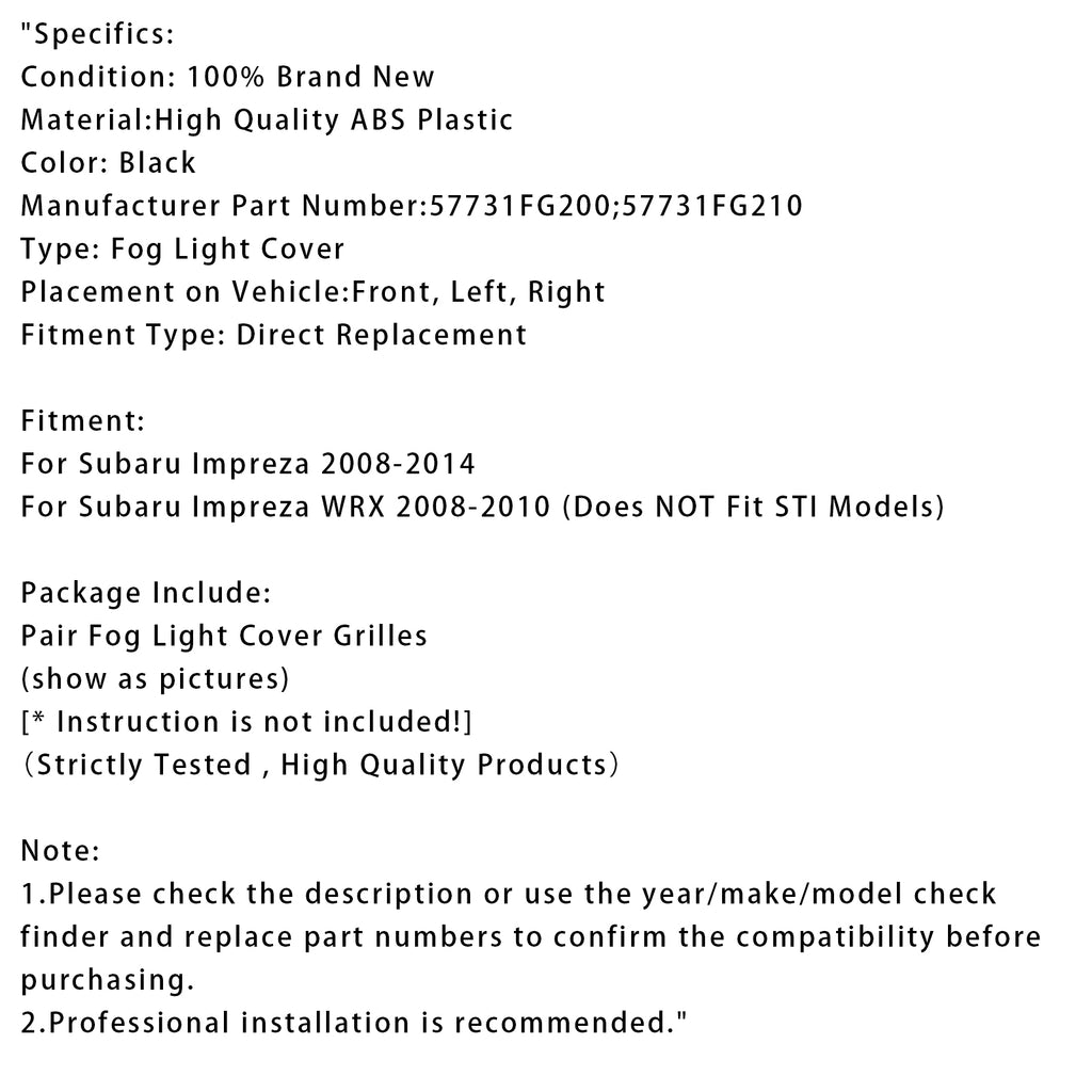 Par dimljusgaller för Subaru Impreza 2008-2014 57731FG200