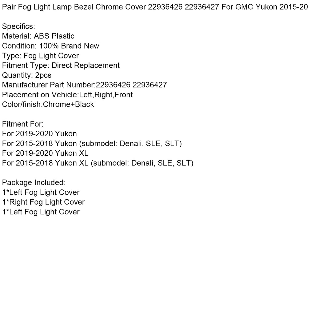 Par Dimljus Lampram Kromskydd 22936426 22936427 För GMC Yukon 2015-2020