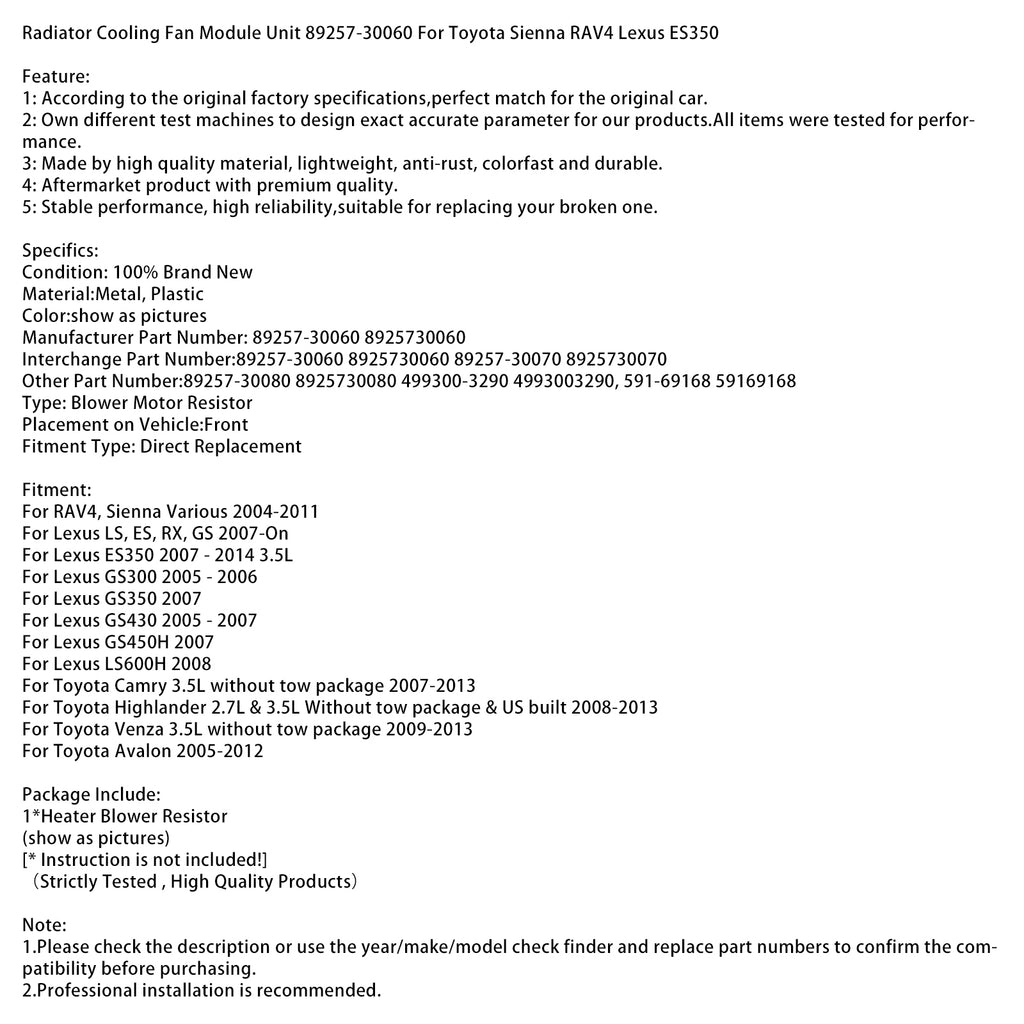 Radiator Cooling Fan Module Unit 89257-30060 For Toyota Sienna RAV4 Lexus ES350