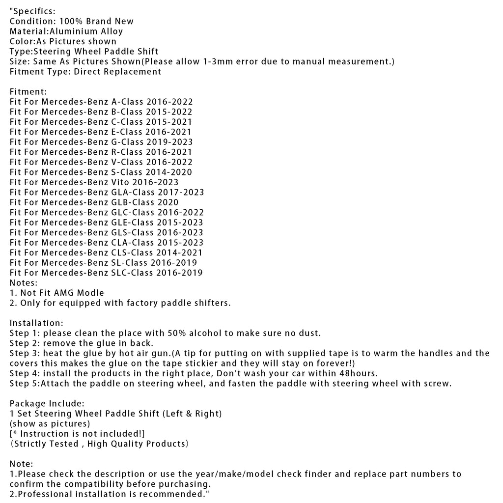 Rattpaddlar förlängare för Mercedes-Benz C GLC E 2015-2022