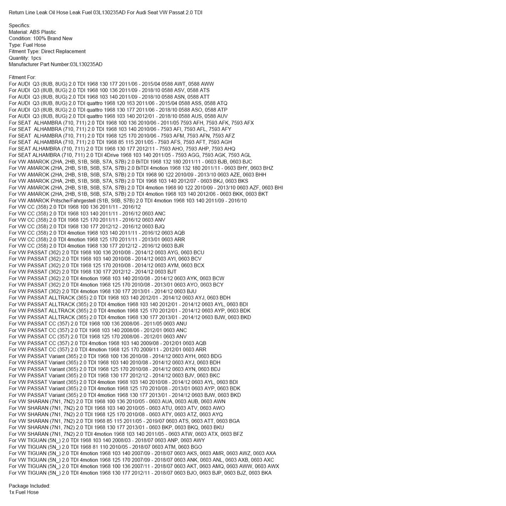 Returledning Läckage Oljeslang Läckage Bränsle 03L130235AD För Audi Seat VW Passat 2.0 TDI