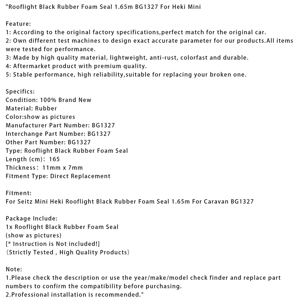 For Seitz Mini Heki Rooflight Black Rubber Foam Seal 1.65m For Caravan BG1327