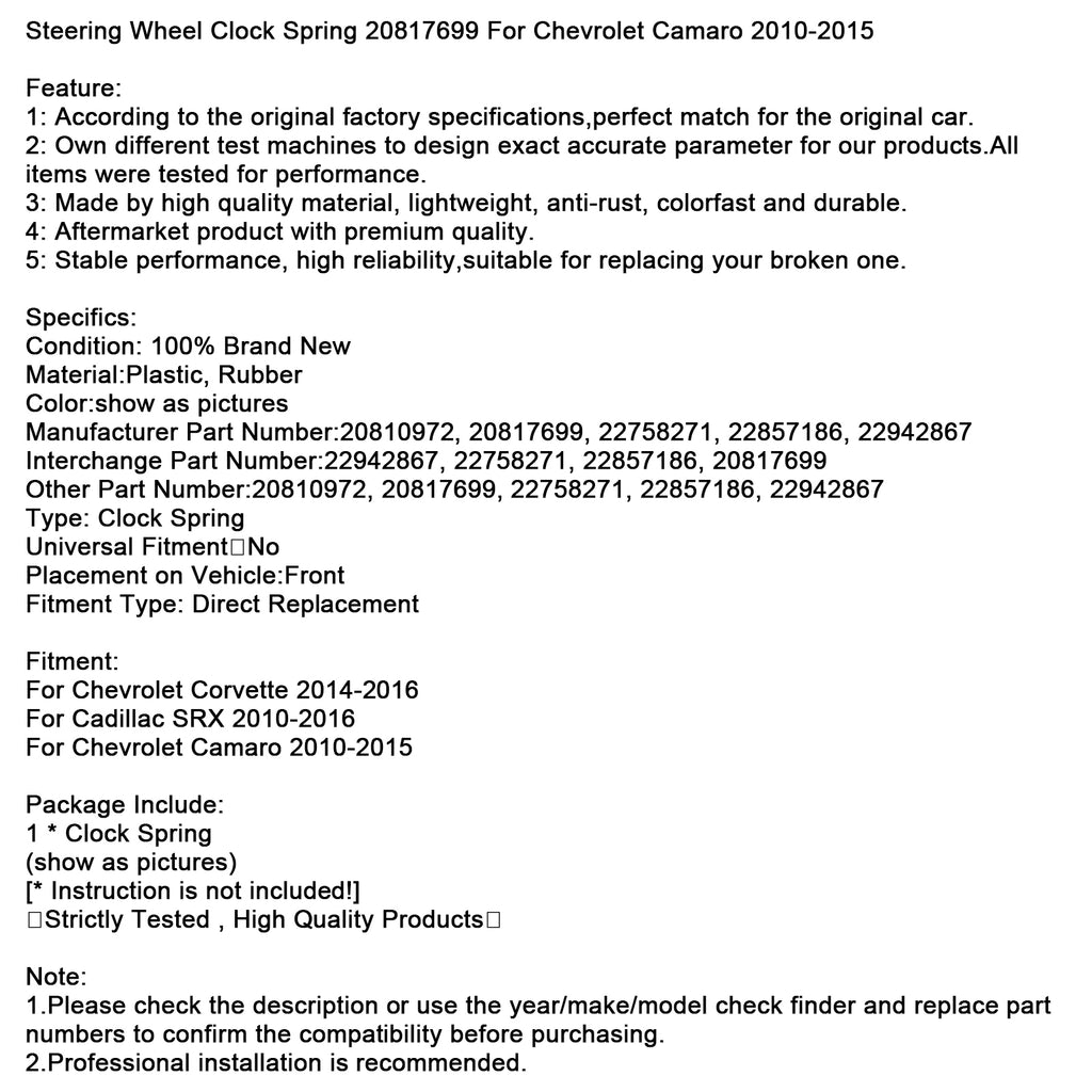 Steering Wheel Clock Spring 20817699 For Chevrolet Camaro 2010-2015