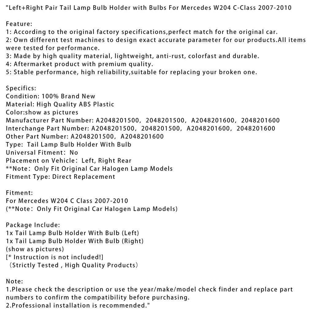 Vänster+Höger par baklykta lamphållare med glödlampor för Mercedes W204 C-klass 2007-2010